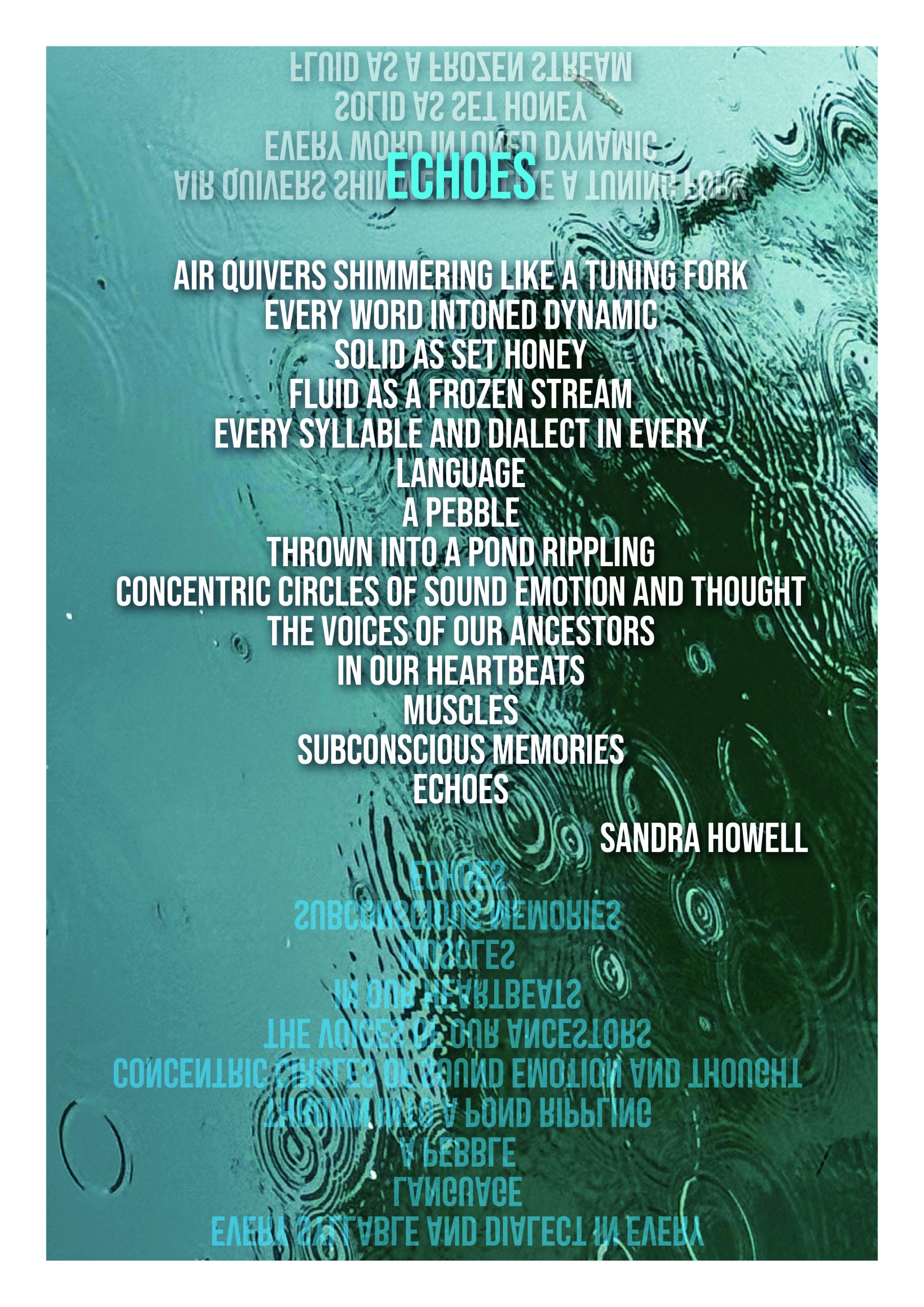 ‘Echoes’ a poem by Sandra Howell. Limited edition of 20 light blue and 20 light purple A3 prints; A3 Giclée print on photo rag Hahnemühle paper, signed by Sandra Howell.