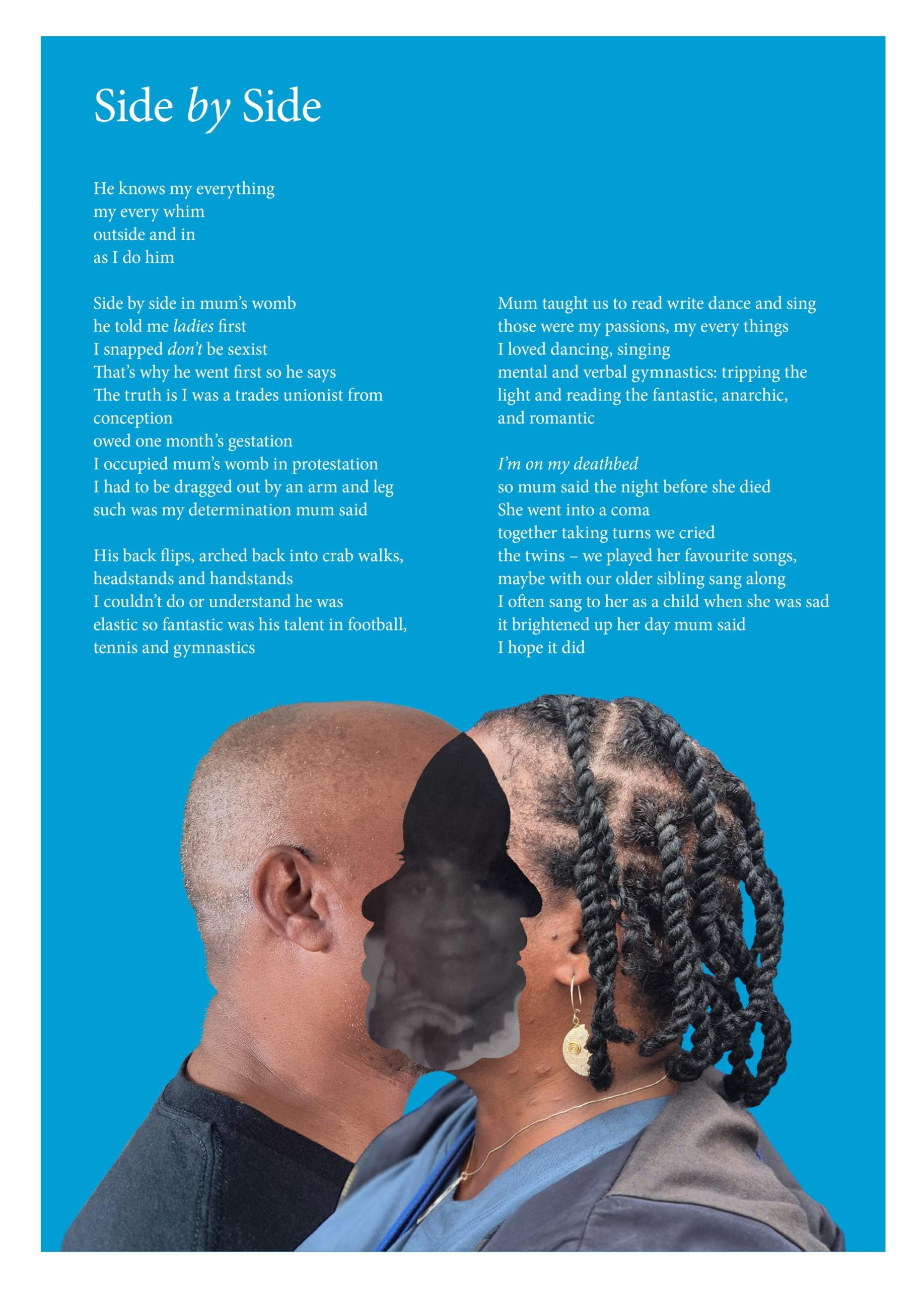 ‘Side By Side’ a poem by Sandra Howell. Limited editions of 20 colour and 20 black and white A3 prints; A3 Giclée print on photo rag Hahnemühle paper, signed by Sandra Howell.
